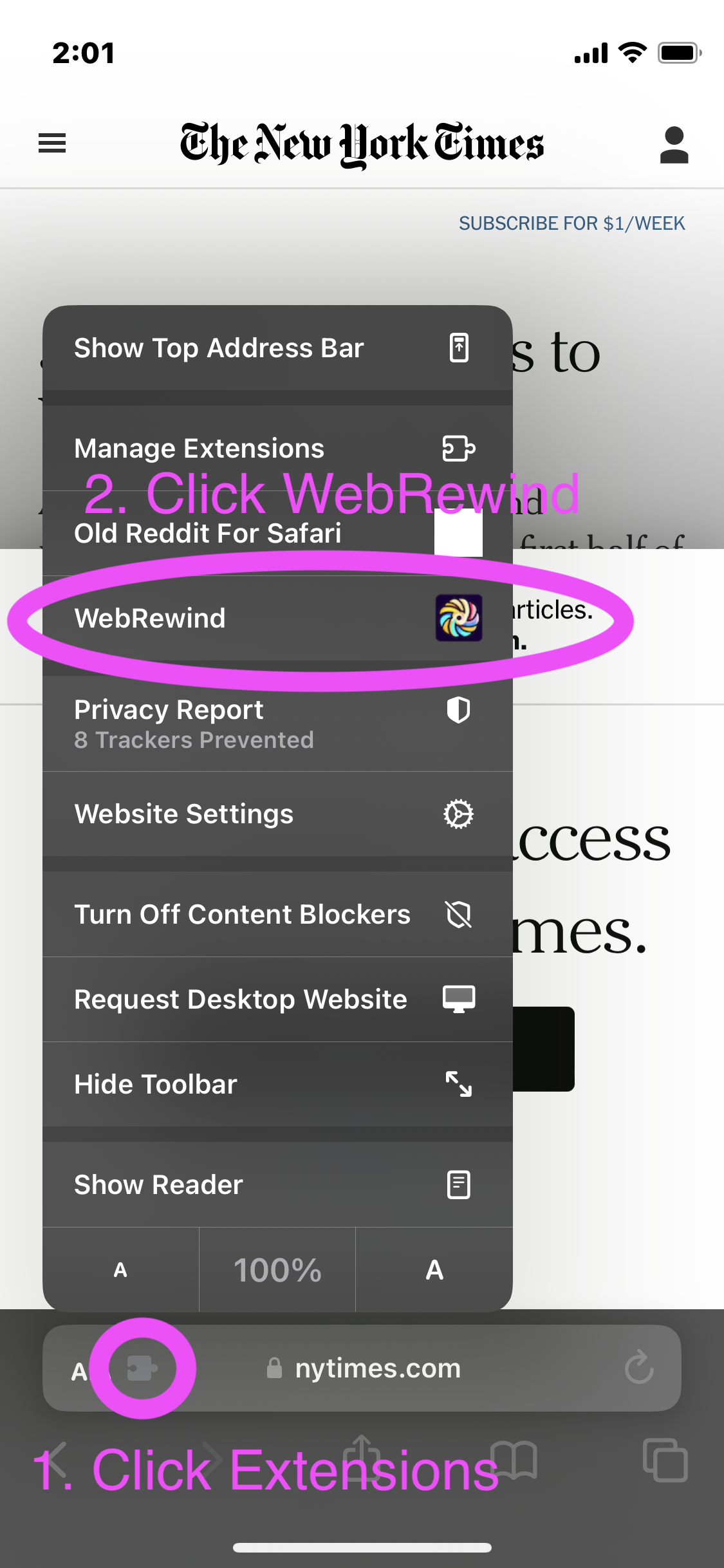 Step 3: WebRewind Safari拡張機能をクリック