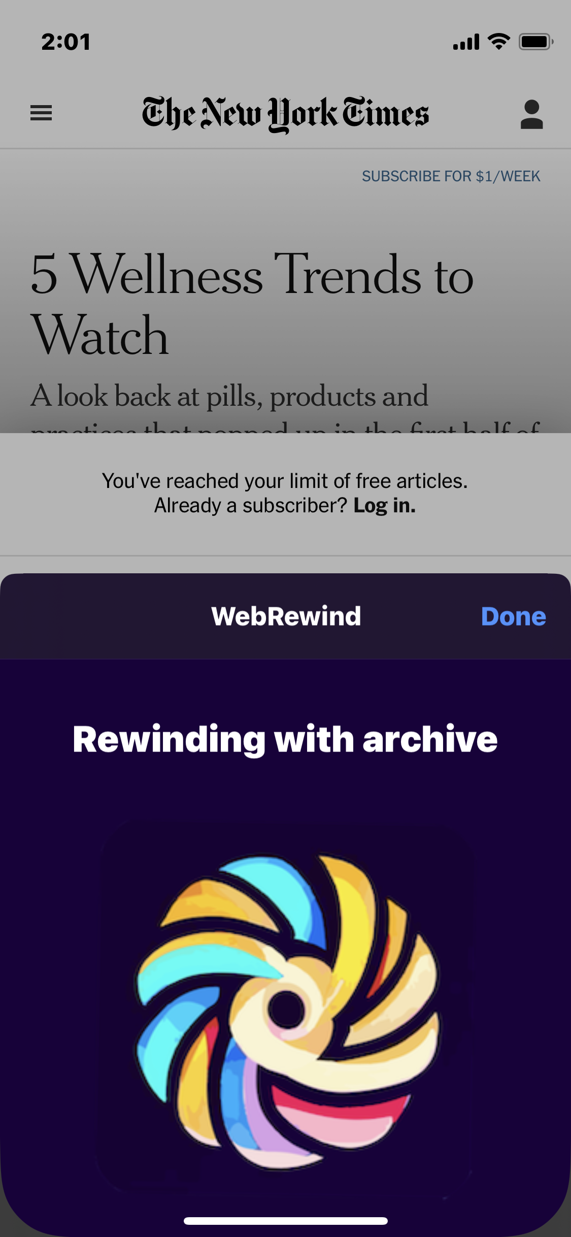 ペイウォールで読みたい記事を諦める必要はありません。WebRewindなら、The New York Timesのペイウォールを簡単に回避できます。ニュース、調査、リサーチまで、必要な情報にすぐアクセスしましょう。